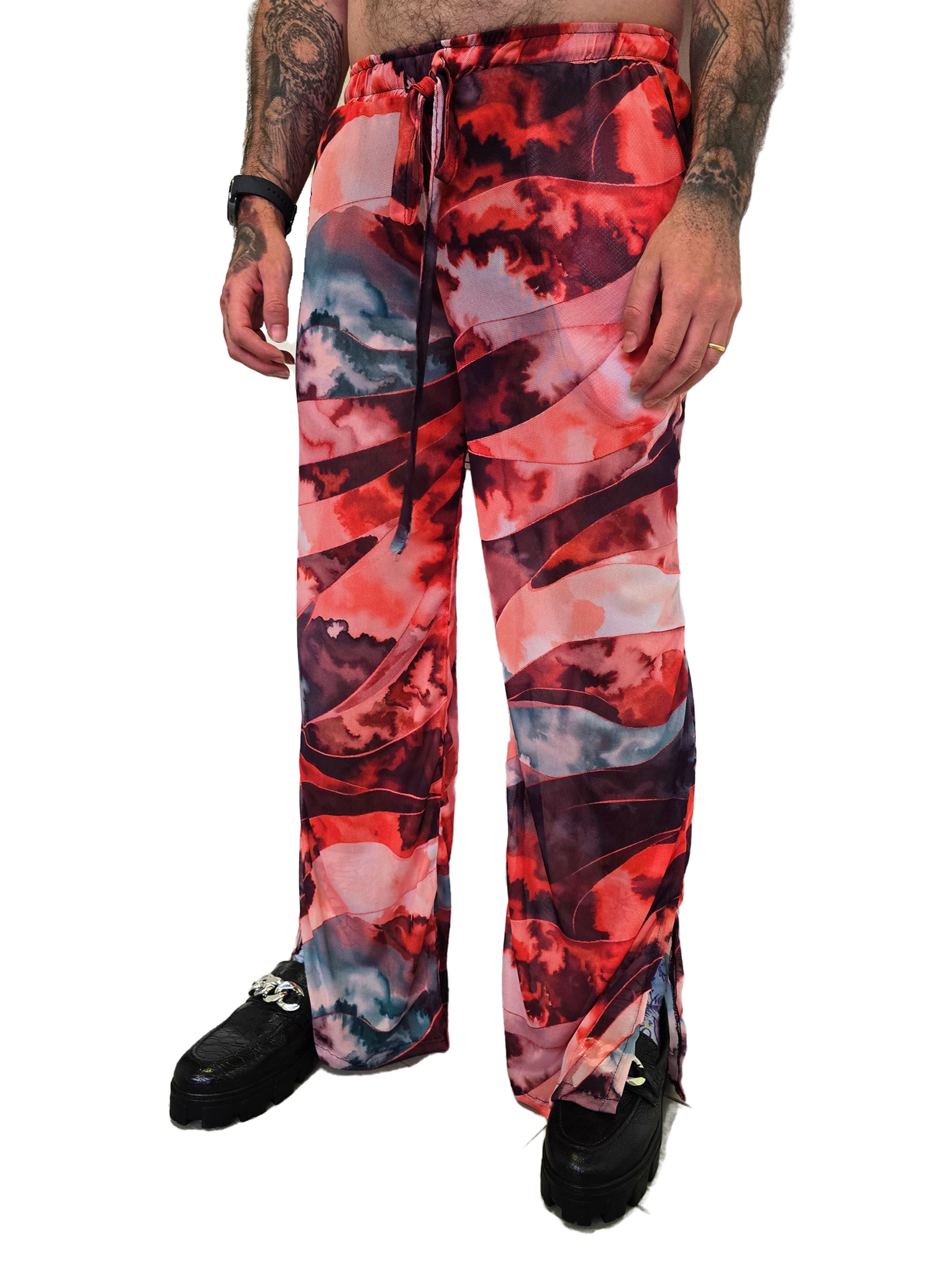 Calça Marte apresenta estampa abstrata em tons vibrantes, criando um visual moderno e sofisticado. Ideal para composições elegantes ou para dar destaque a produções mais casuais.