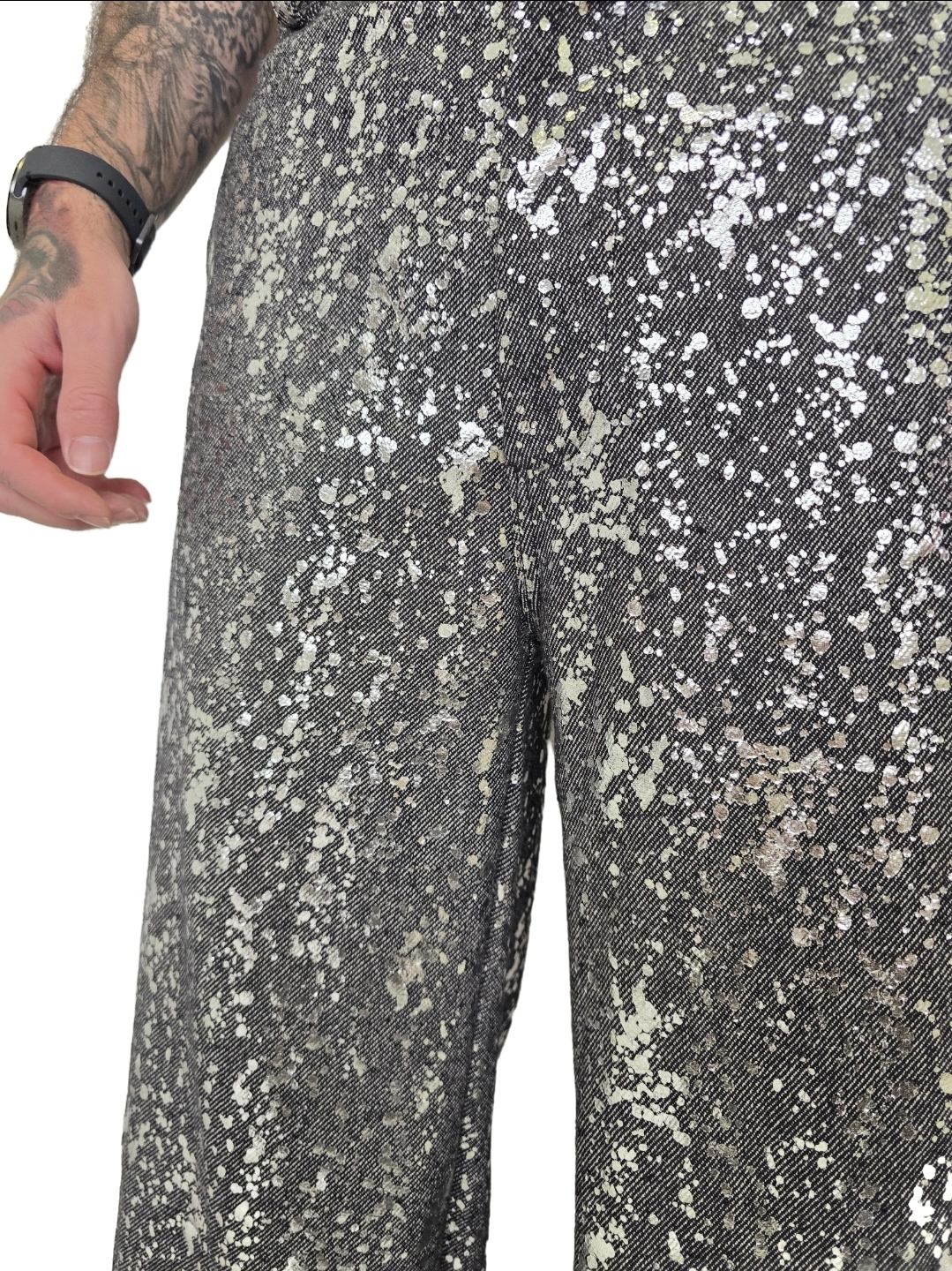 Calça jeans com estampa prata