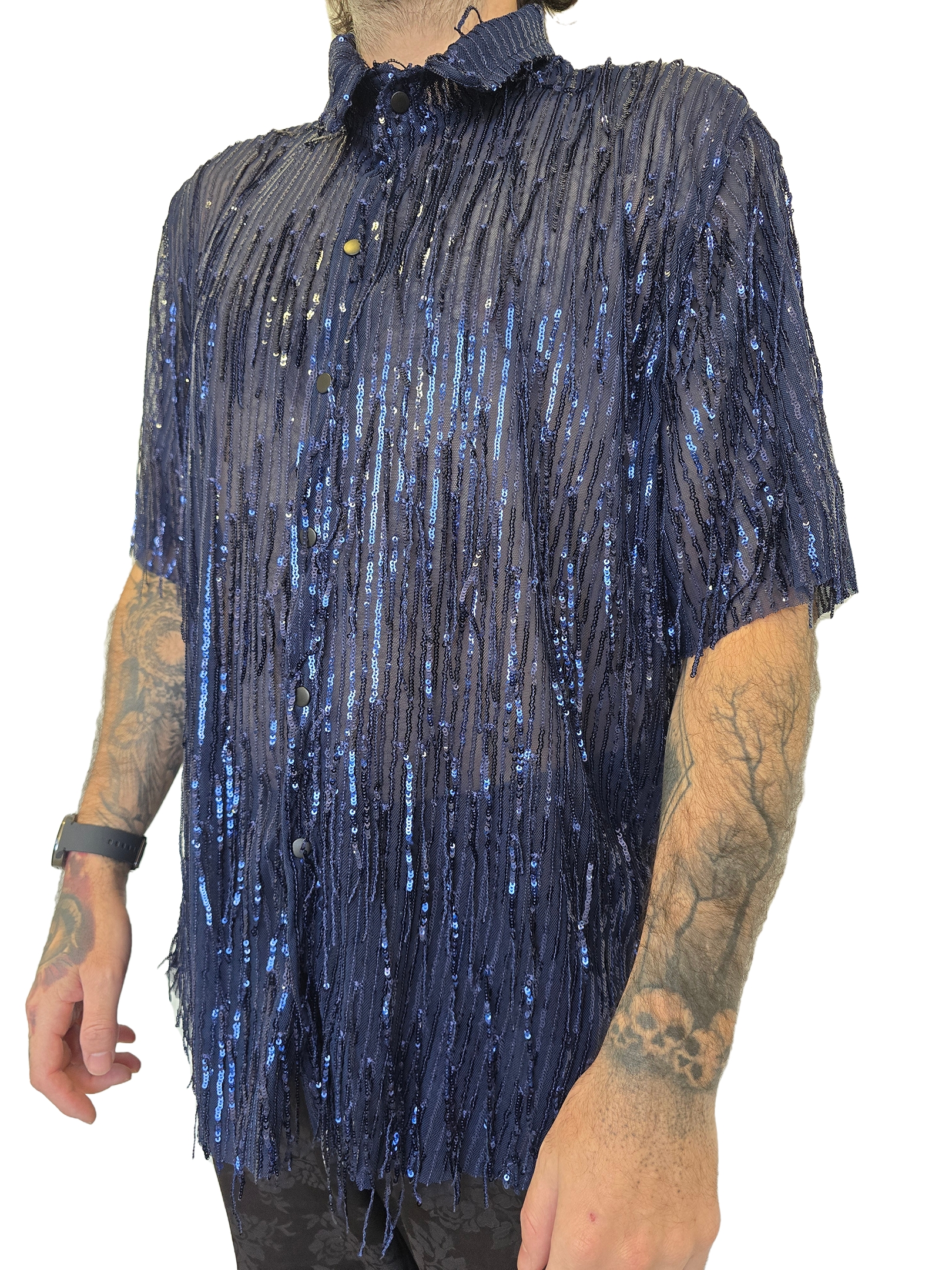Camisa Franjas Brilhantes é puro glamuor e atitute. Com franjas alongadas que se movem com o corpo e lantejoulas que refletem a luz de todos os ângulos. Feito com tecido leve e maleável, ele une conforto e impacto visual em um look só. Ideal para festivais, festas, apresentações ou aquele rolê onde você quer causar.