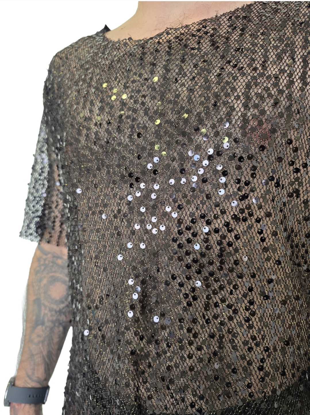 Camiseta Manga Curta Aranha totalmente revestida em brilho, perfeita para quem quer marcar presença. Confeccionada em tecido com base em malha leve, ela é inteiramente aplicada com paetês em degradê sofisticado. O modelo possui caimento ajustado ao corpo com elegância e modernidade. As mangas seguem o mesmo acabamento brilhoso, garantindo um visual impactante de todos os ângulos. Ideal para eventos noturnos, festas, jantares especiais e produções glamourosas. Uma peça poderosa, ousada e cheia de personalidade, feita para bilhar.