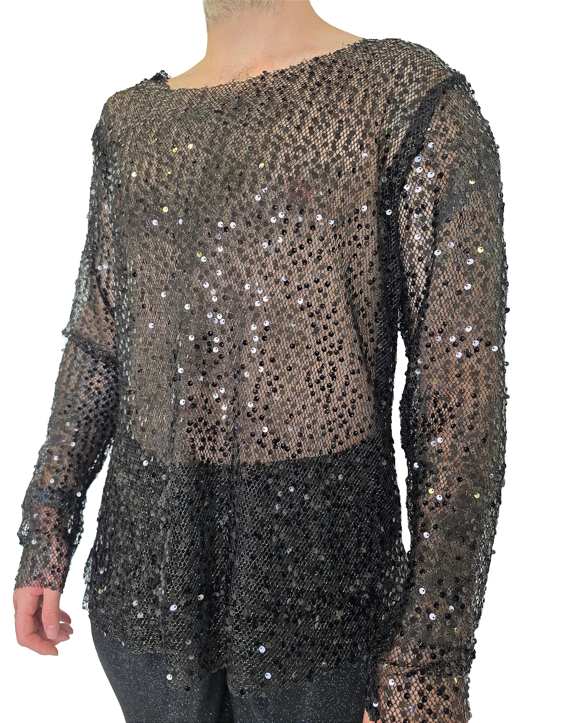 Camiseta Manga Longa Aranha totalmente revestida em brilho, perfeita para quem quer marcar presença. Confeccionada em tecido com base em malha leve, ela é inteiramente aplicada com paetês em degradê sofisticado. O modelo possui caimento ajustado ao corpo com elegância e modernidade. As mangas longas seguem o mesmo acabamento brilhoso, garantindo um visual impactante de todos os ângulos. Ideal para eventos noturnos, festas, jantares especiais e produções glamourosas. Uma peça poderosa, ousada e cheia de personalidade, feita para bilhar.