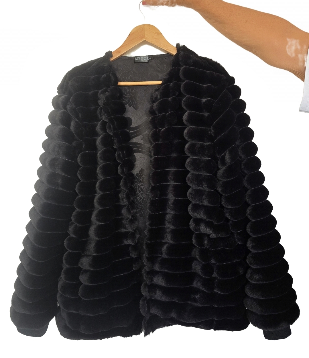 Jaqueta com tecido de pelúcia sintética e super macia. Com forro e bolso lateral.